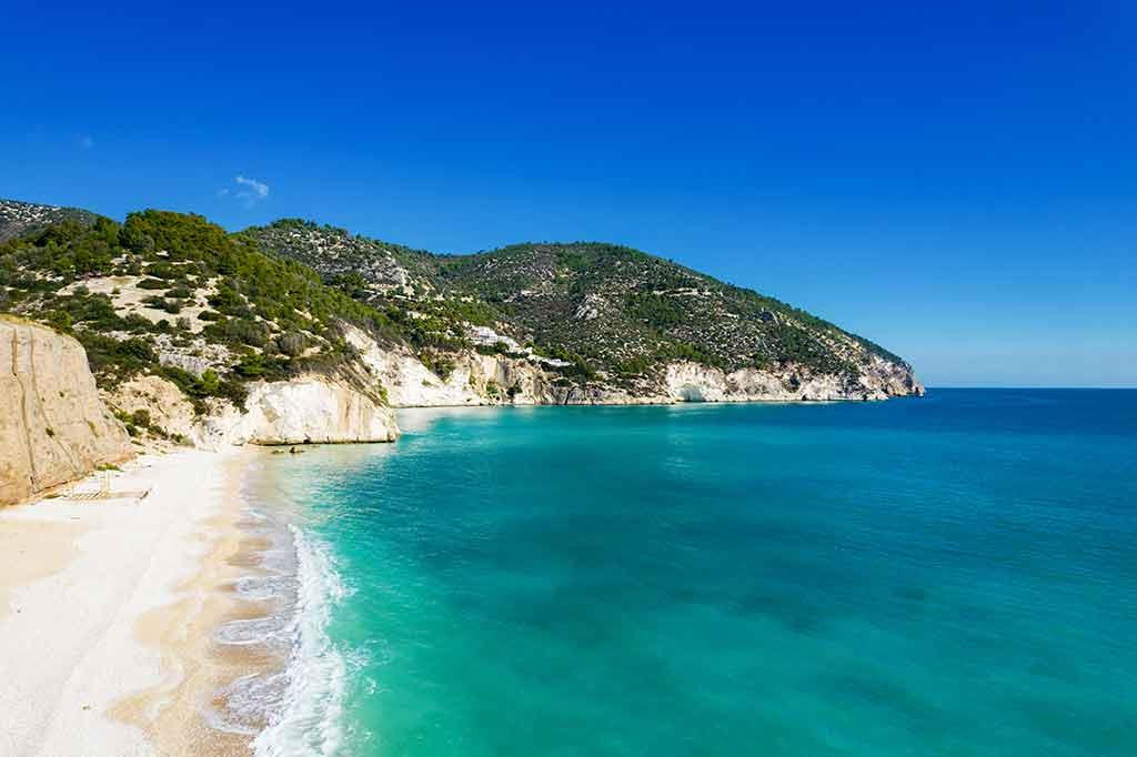 La baia è tra le più belle spiagge del Gargano: chilometri di ciottoli levigati dal mare cristallino ed un incantevole corollario di grotte, cale e spiagge accessibili solo dal mare, come i Faraglioni di Baia delle Zagare e la spiaggia di Vignanotica e Pugnochiuso.